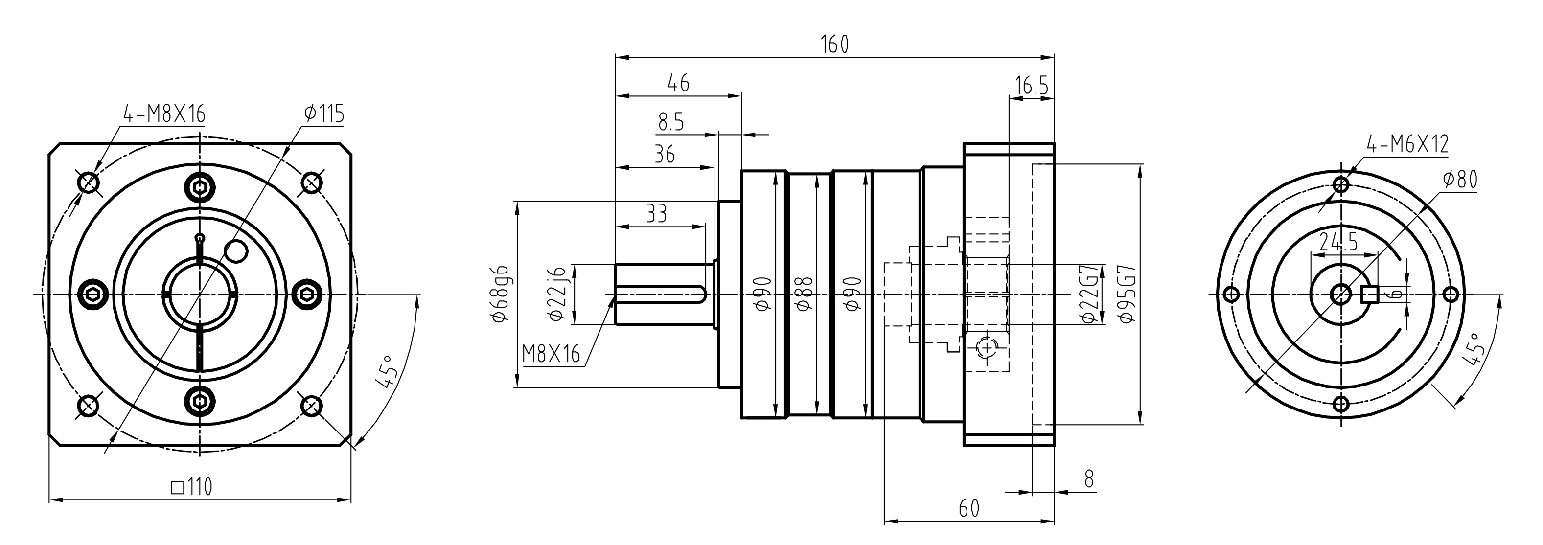 Output shaft: 22